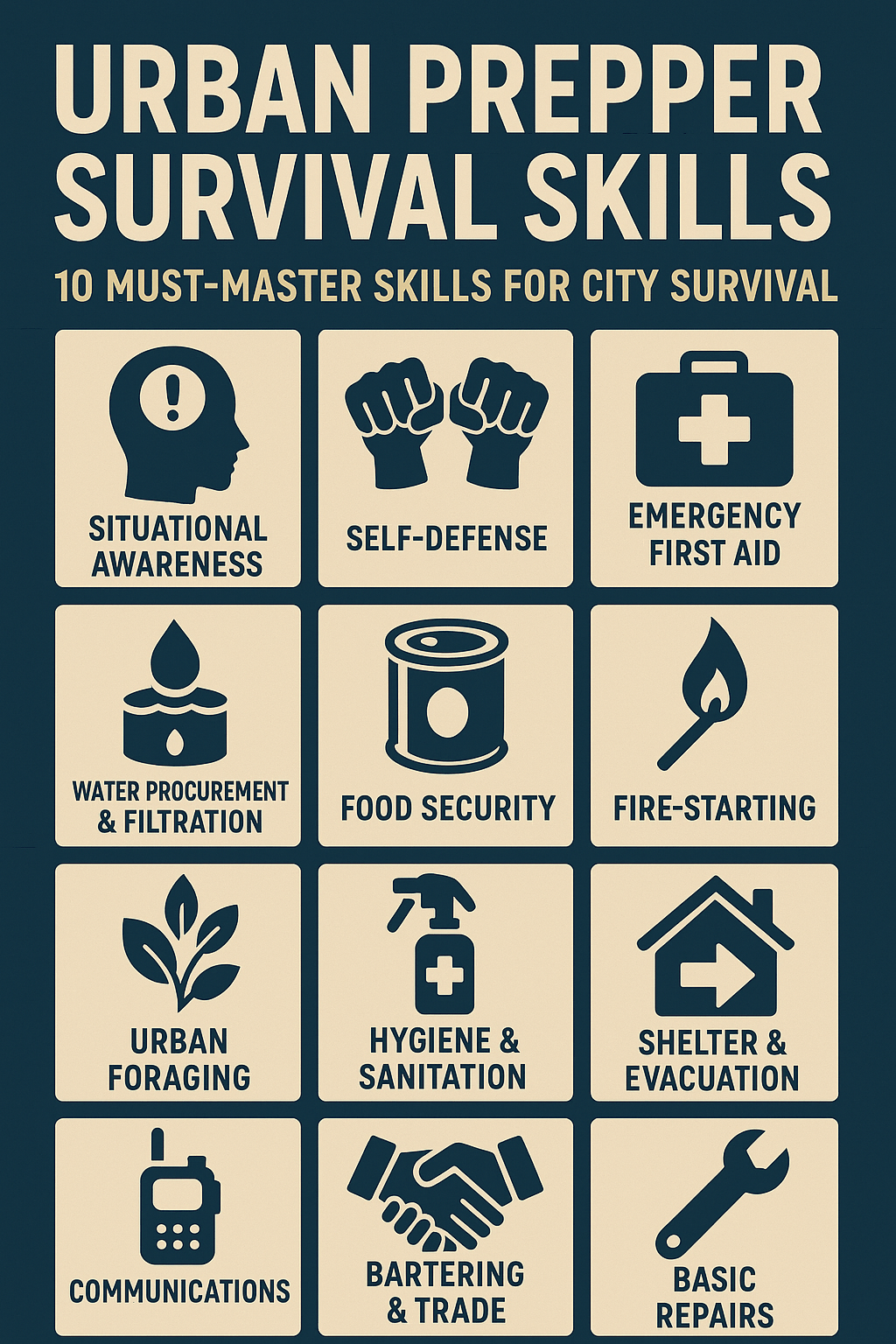 10 Survival Skills Every Urban Prepper Must Master Urban environments can turn dangerous quickly during a crisis. Whether facing natural